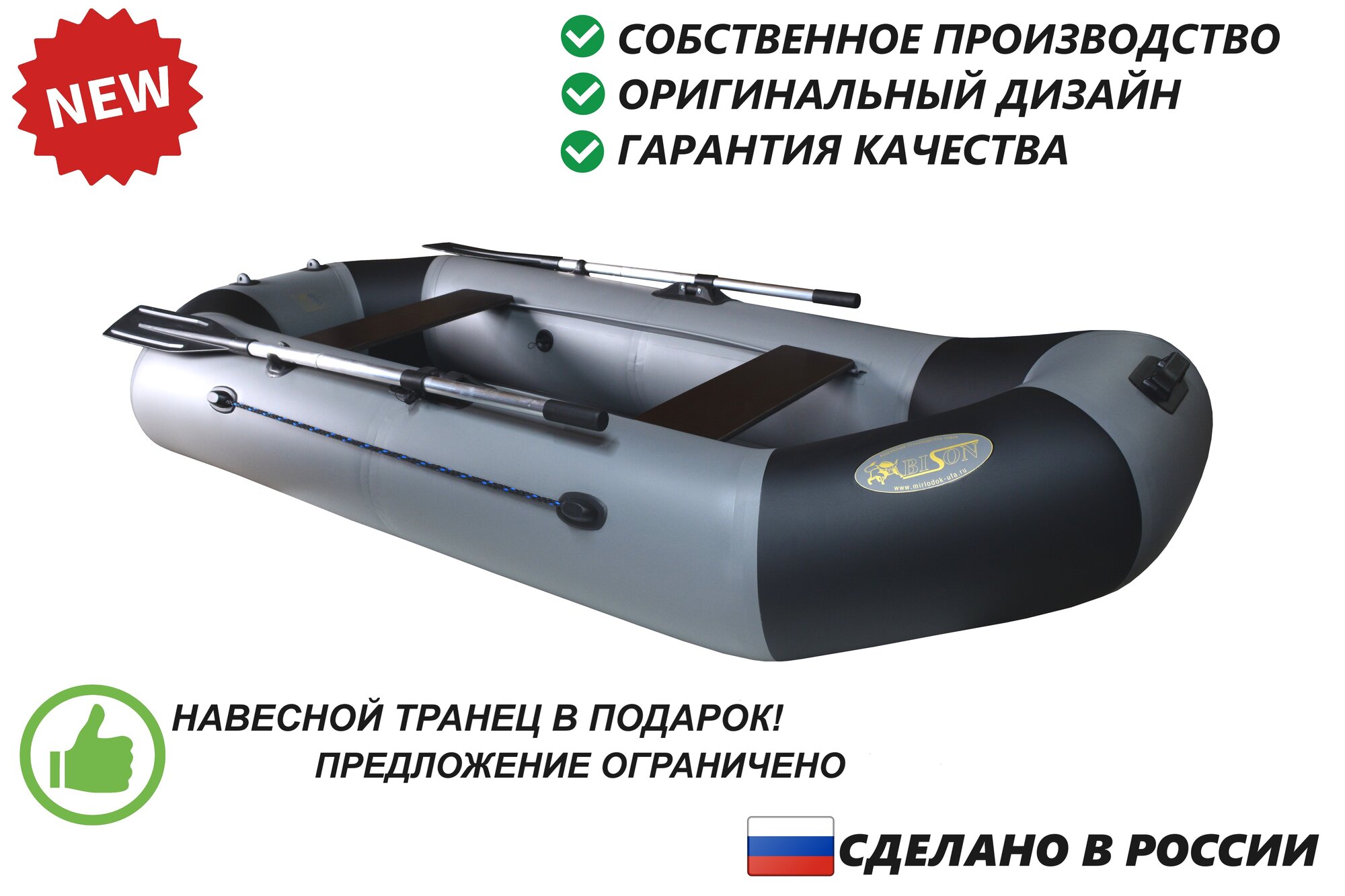 Надувная пвх лодка Бизон-265 (серый/черный) информация: