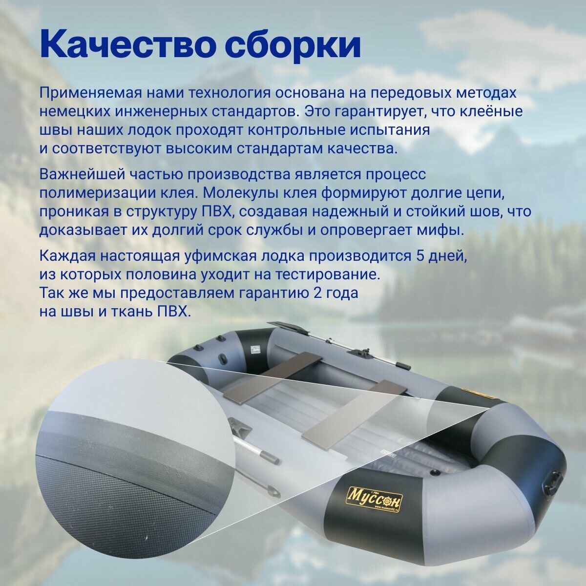 10 цен на Лодка надувная для рыбалки ПВХ Муссон H-300 НД под мотор, двухместная гребная, серо-черная