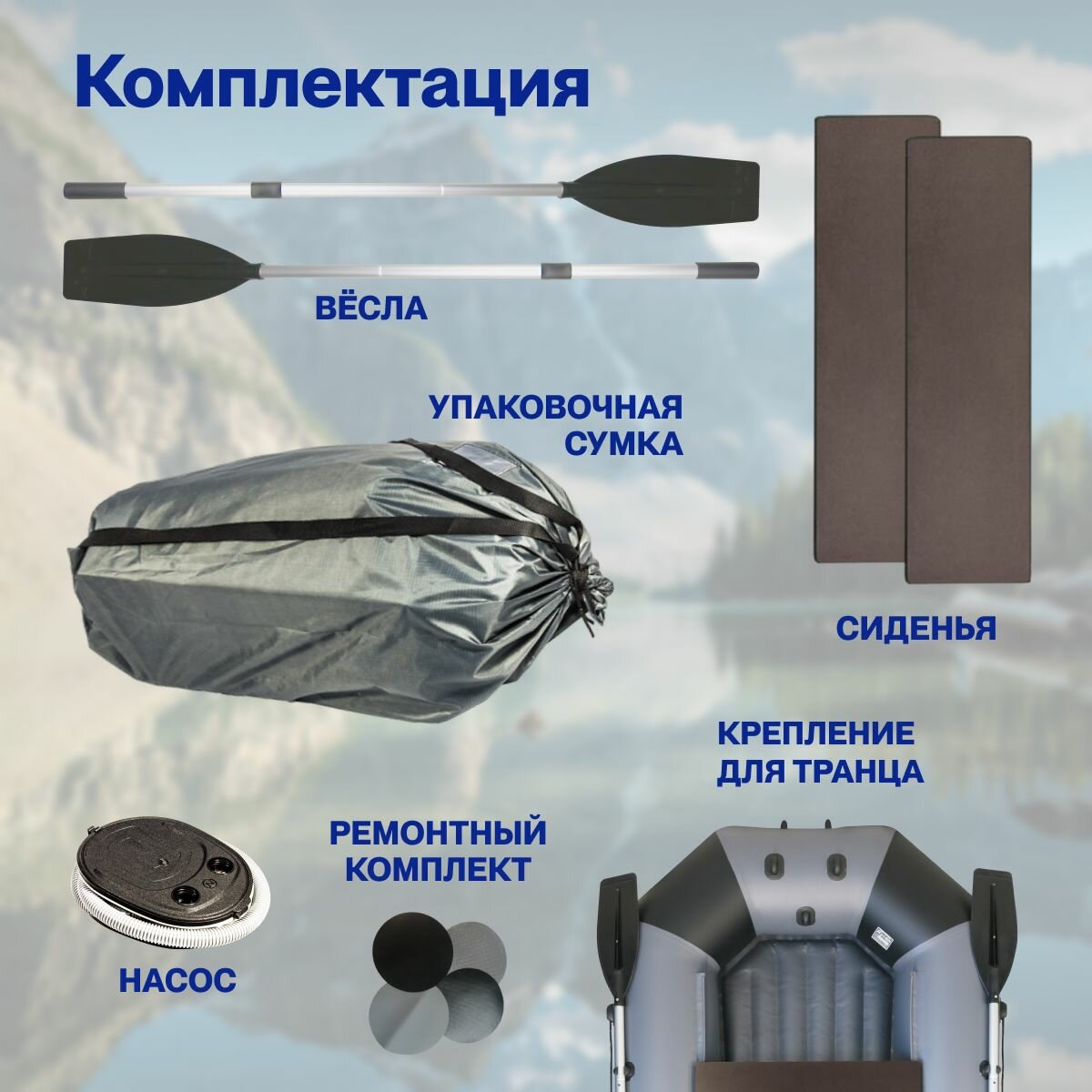 Лодка надувная для рыбалки ПВХ Муссон H-300 НД под мотор, двухместная гребная, серо-черная информация: