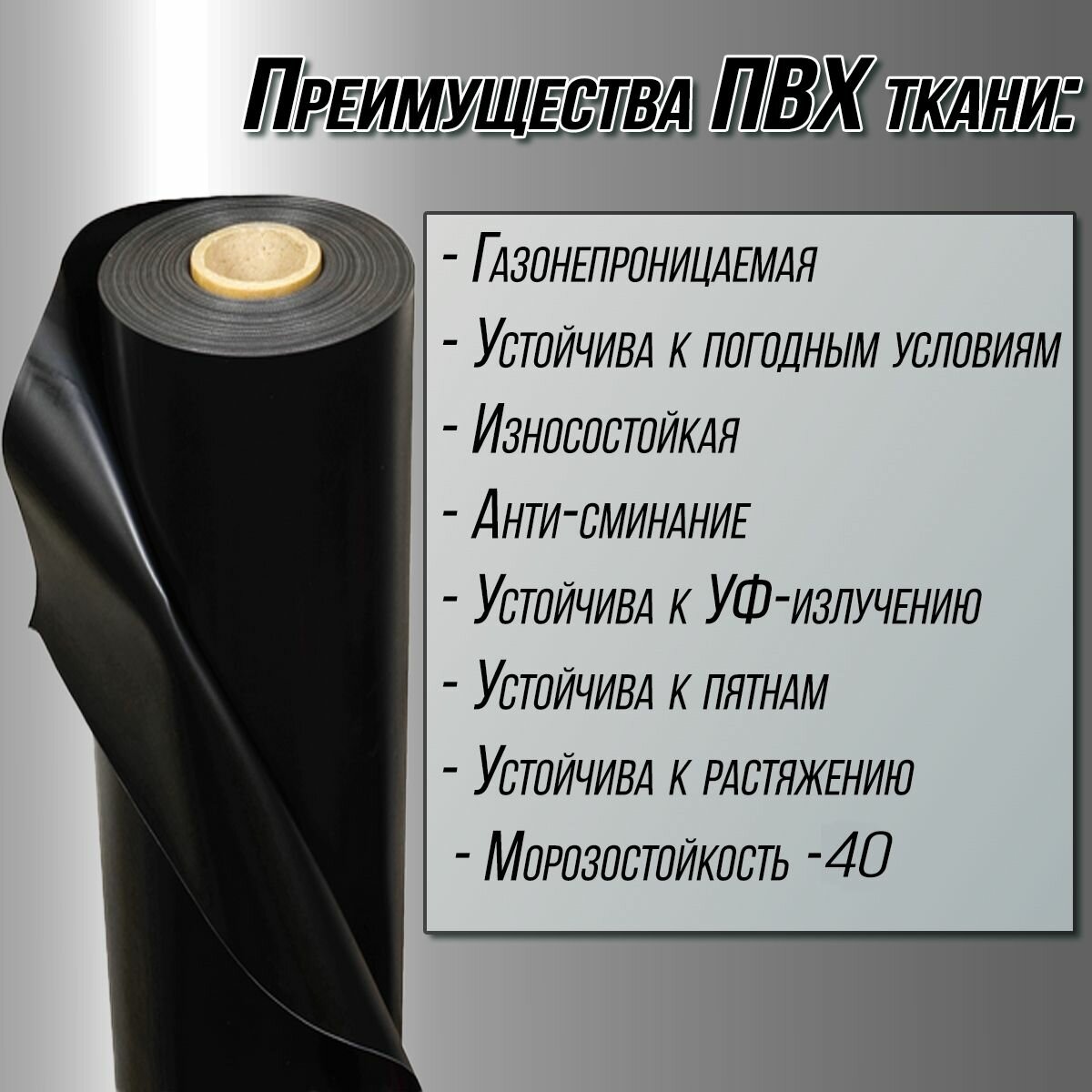 Ткань ПВХ лодочная, 750 г/м2 (черная) 100х205 см, 750 г/м2, для ремонта лодок и других изделий из ПВХ цена за 1 пог. М 2 300 ₽