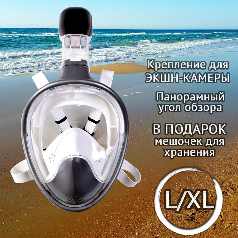 Отзывы на Подводная маска для плавания полнолицевая, размер L, серый/белый