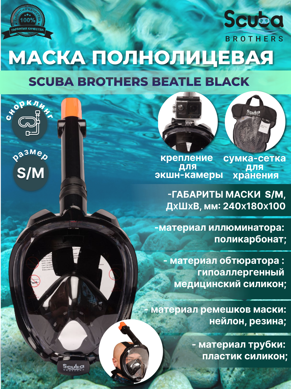 10 цен на Маска полнолицевая SCUBA BROTHERS BEATLE BLACK, с креплением экшн-камеры, р-р S/M