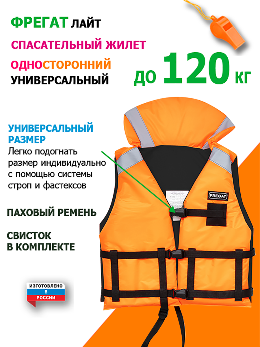 Спасательный жилет Фрегат (Лайт) до 120 кг (р. 42/50) универсальный односторонний информация: