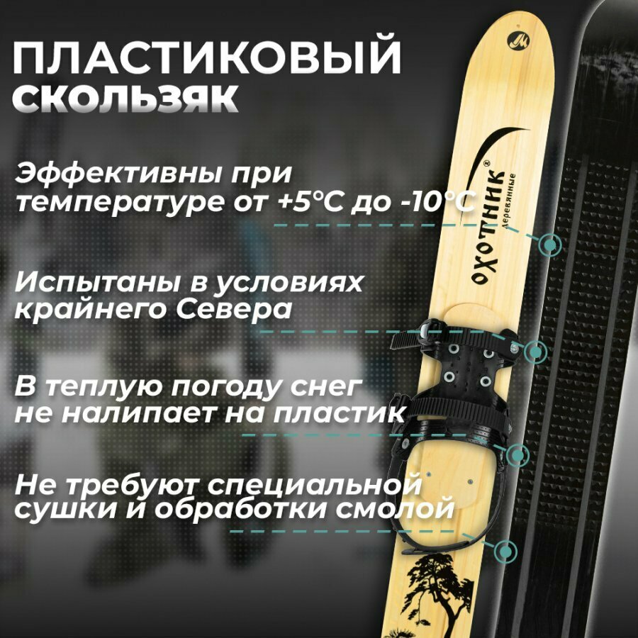 Лыжи охотничьи пластиковые Маяк Охотник 120 х 15 см с полужестким креплением (дерево-пластик) информация: