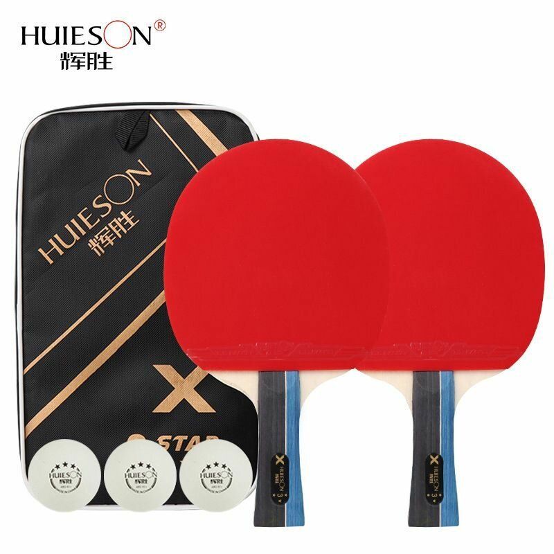 Набор: 2 ракетки Huieson X5 stars +чехол + 3 мяча, для настольного тенниса, полупрофессиональный