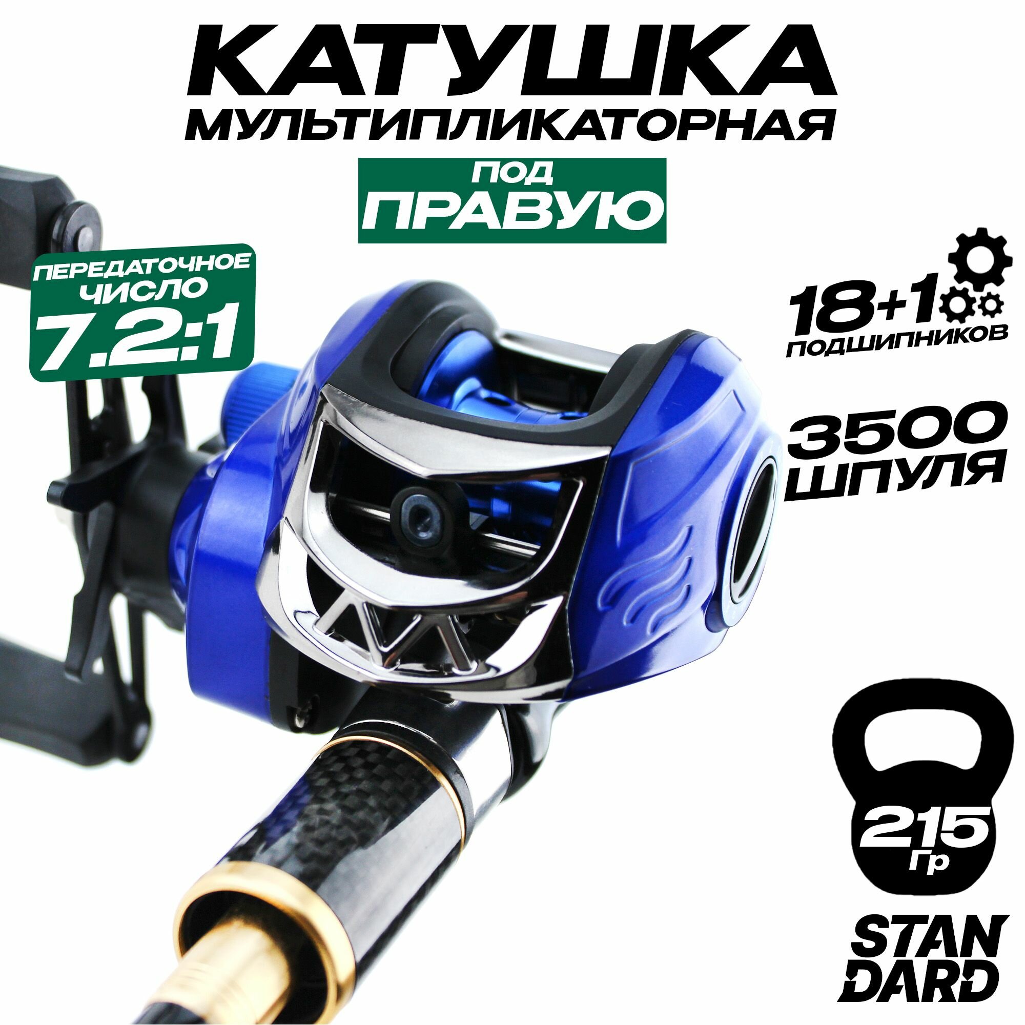 Мультипликаторная катушка для рыбалки под правую руку 18+1 подшипников с Антиреверсом Gear Ratio: 7.2:1 информация: