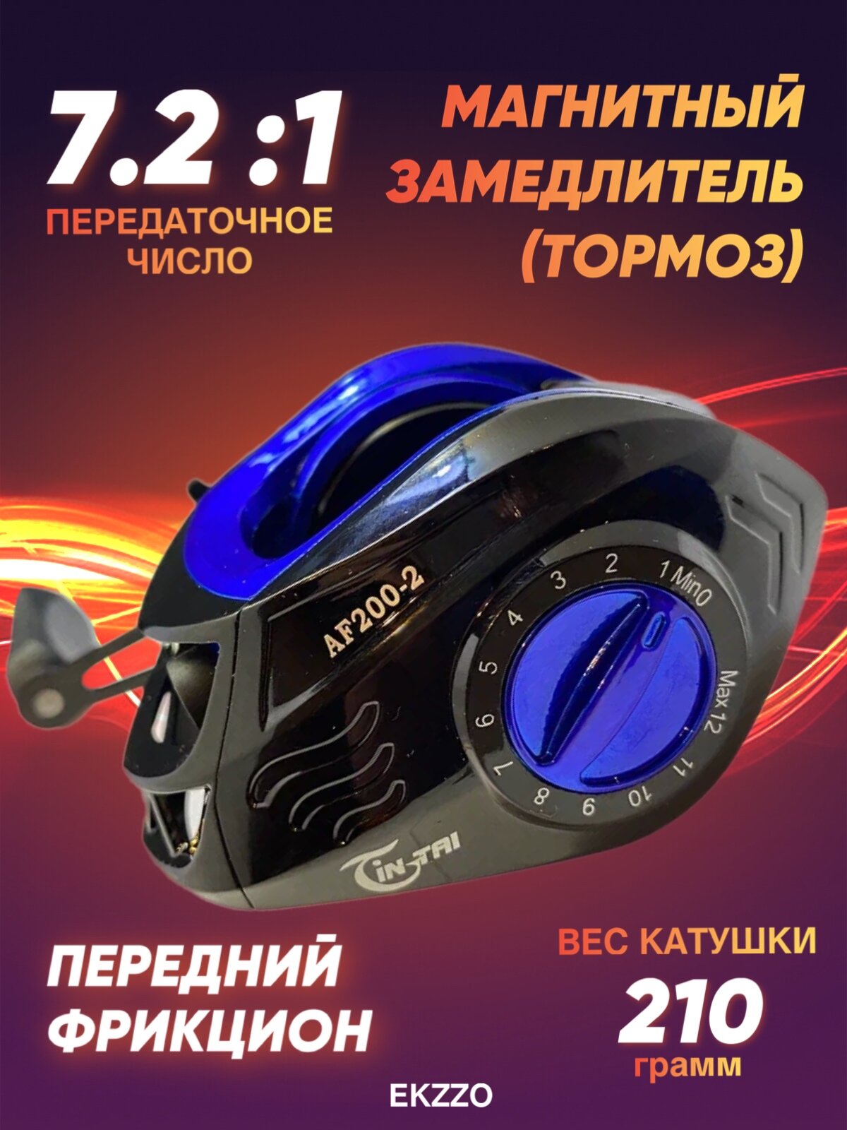 Мультипликаторная рыболовная катушка под правую руку 2000 18+1, красный/черный, 7,2 : 1 информация: