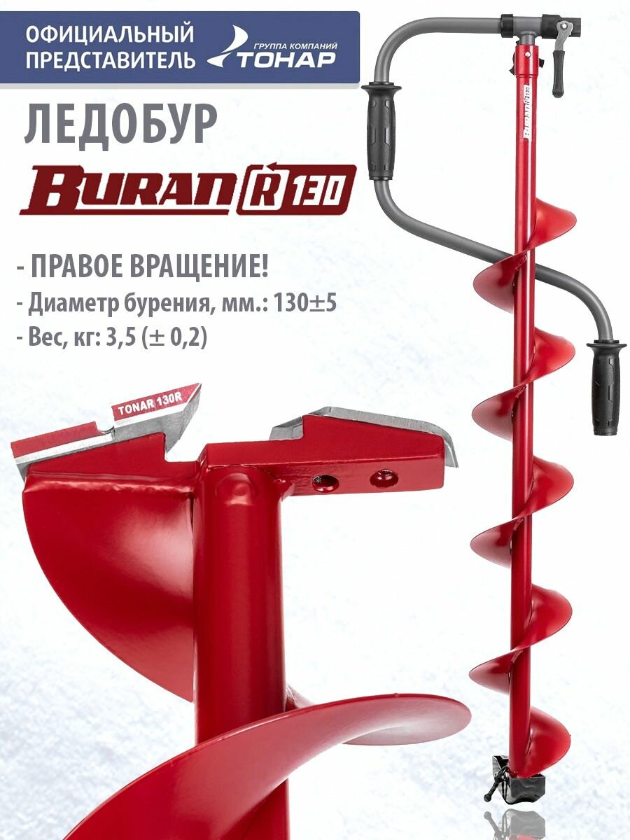 Отзывы на Ледобур BURAN 130R правое вращение, цельнотянутый шнек (LB-130R) Тонар