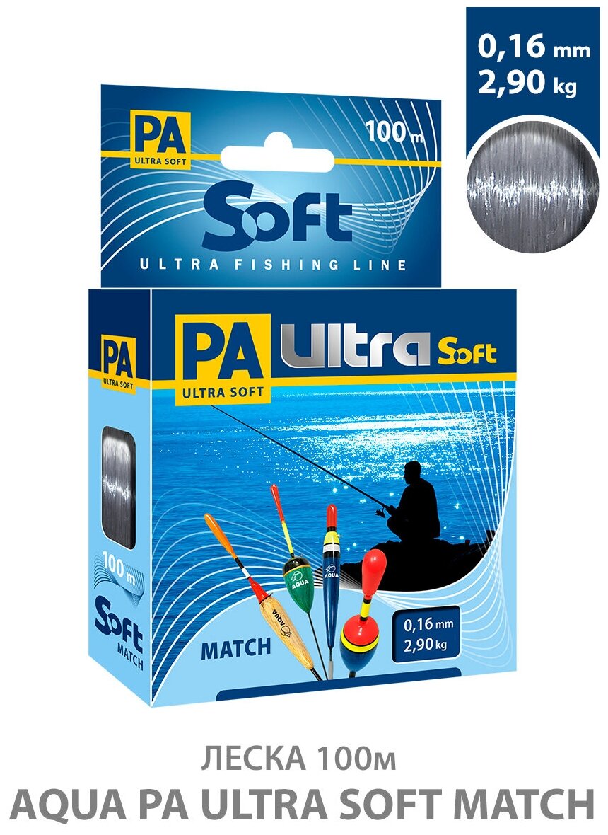 Леска для рыбалки AQUA PA Ultra Soft Match 0.16mm 100m цвет - дымчато-серый 2.9kg информация: