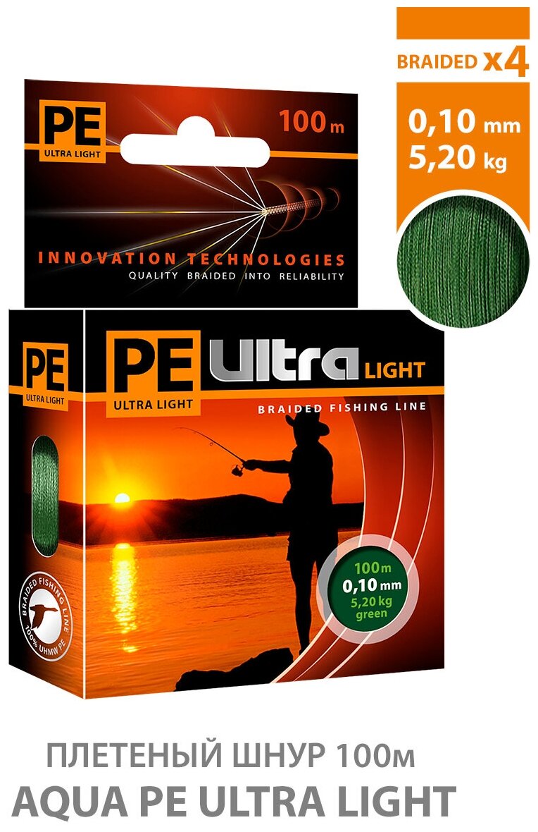 10 цен на Плетеный шнур для рыбалки AQUA PE Ultra Light Dark Green 100m 0.10mm 5.2kg
