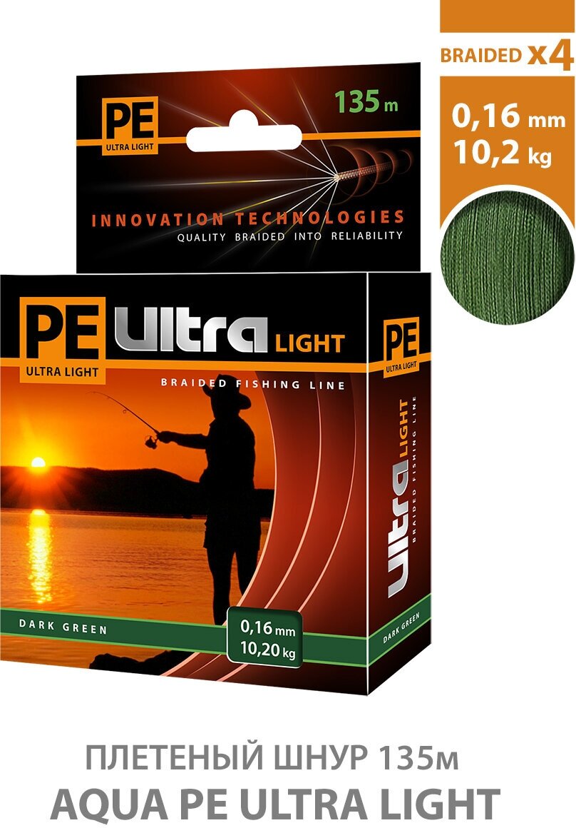 10 цен на Плетеный шнур AQUA PE ULTRA Light 135m dark green, 0.16mm