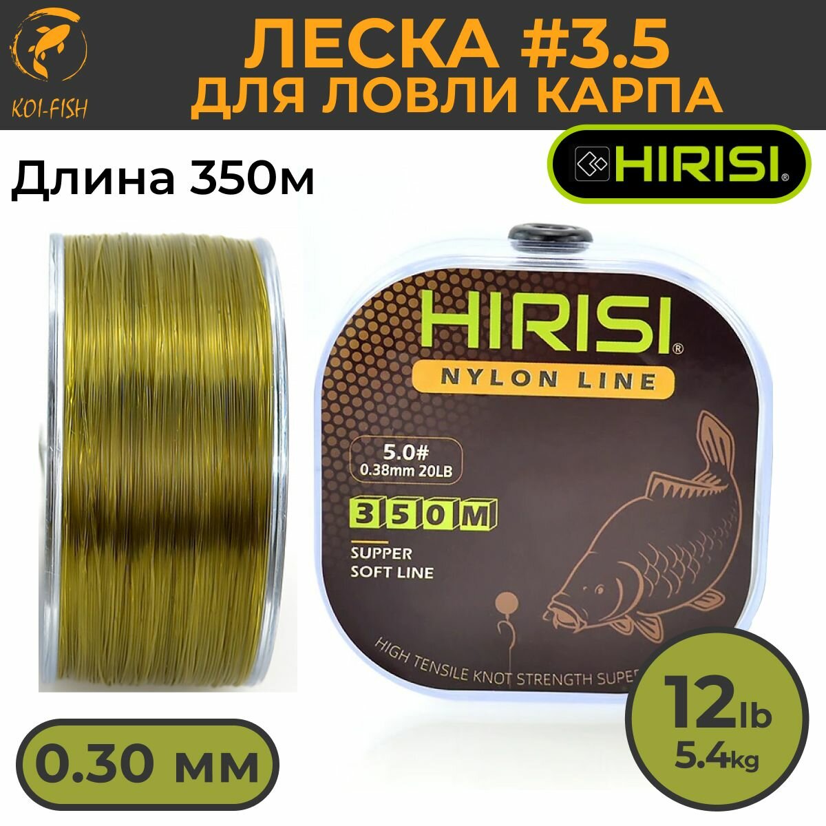 Отзывы на Леска для ловли карпа 0,3 мм (5,4 кг) 350 м. зеленая, Монофильная, Нейлоновая, для рыбалки