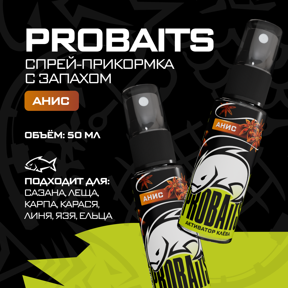 Активатор клёва, спрей прикормка PROBAITS с запахом анис, 50 мл 210 ₽