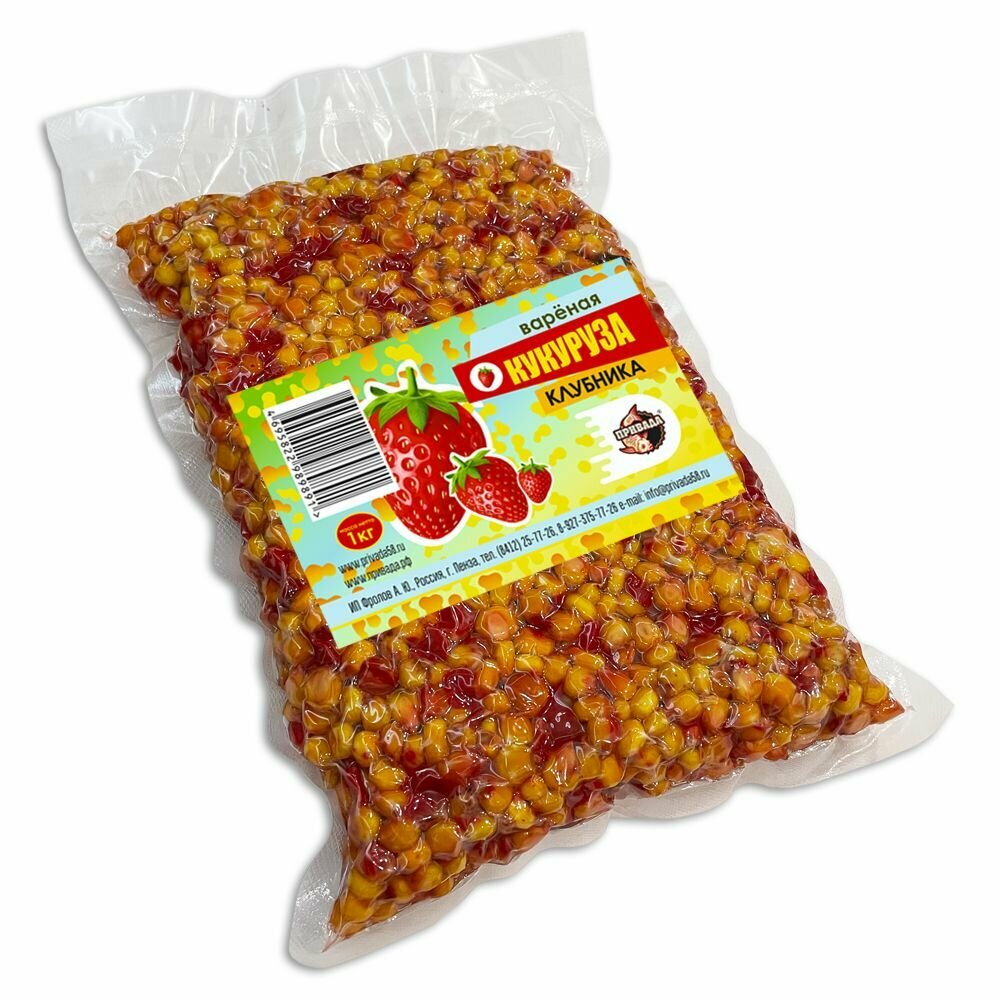 Кукуруза пропаренная привада (прикормочная смесь) в вакууме для рыбалки, клубника, 1кг информация: