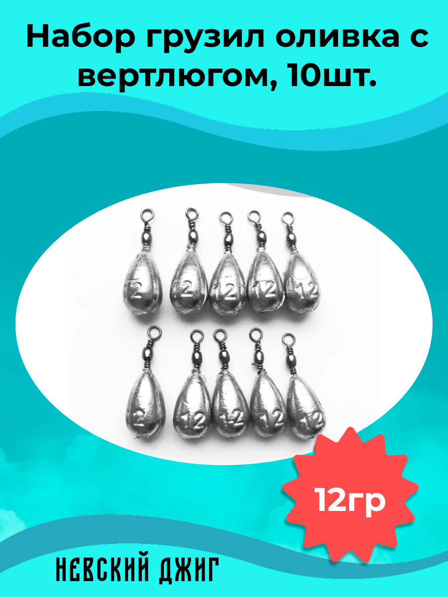 10 цен на Набор грузил для рыбалки Оливка с вертлюгом 12 гр (упаковка 10 штук)