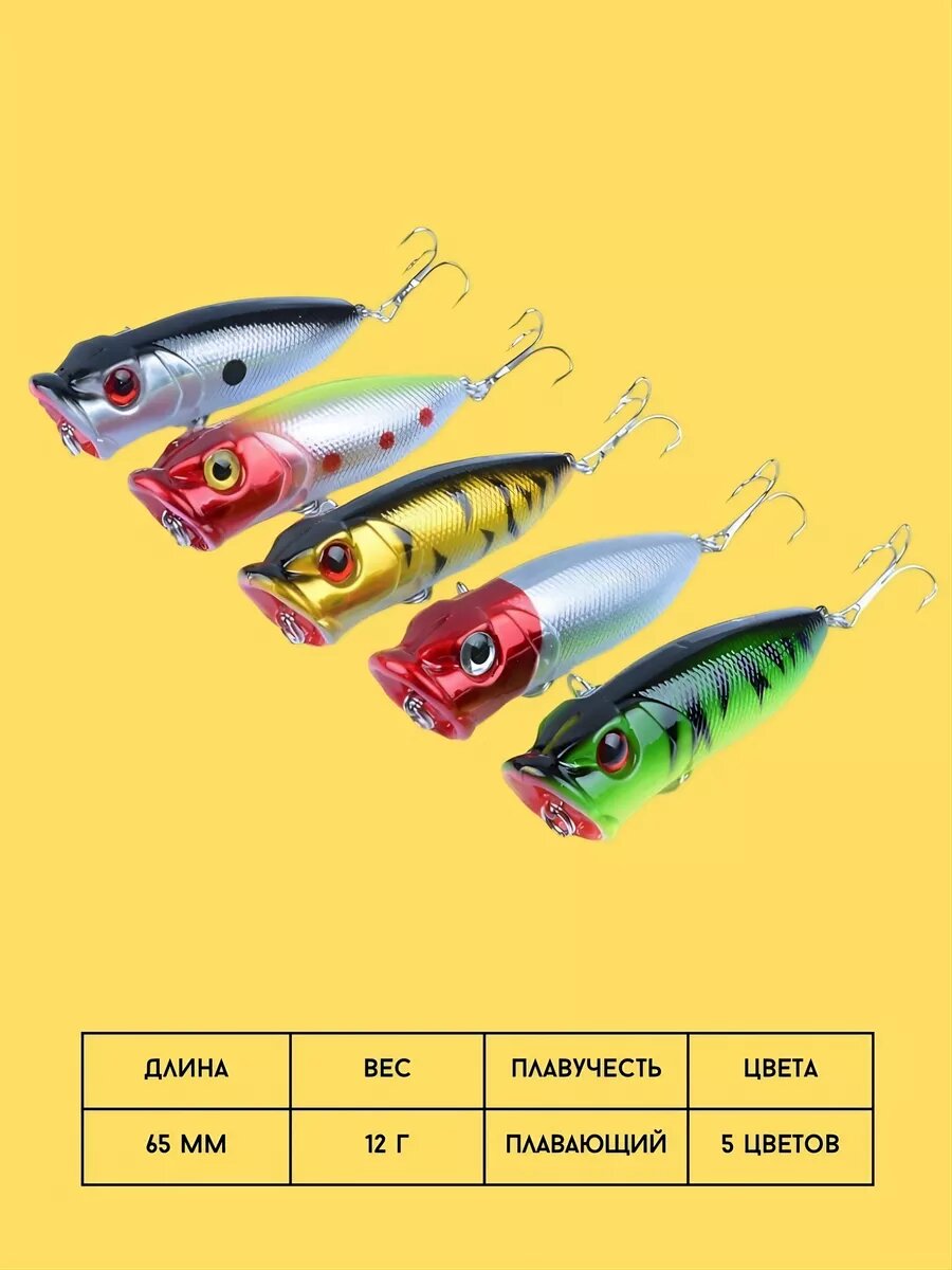 Набор для рыбалки плавающих попперов 5 шт 630 ₽