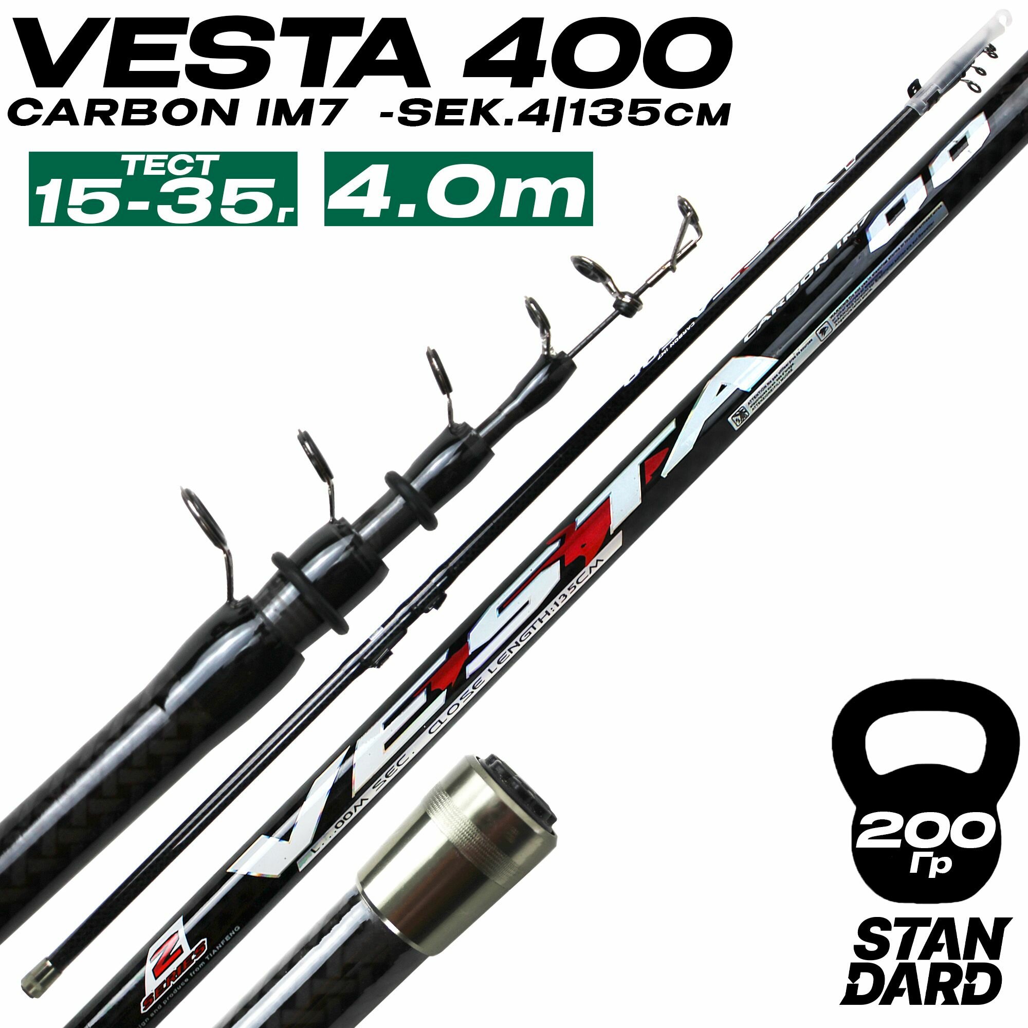 Удочка телескопическая для рыбалки поплавочная 4 метра "VESTA CARBON IM7" Тест: 15-35 г. информация: