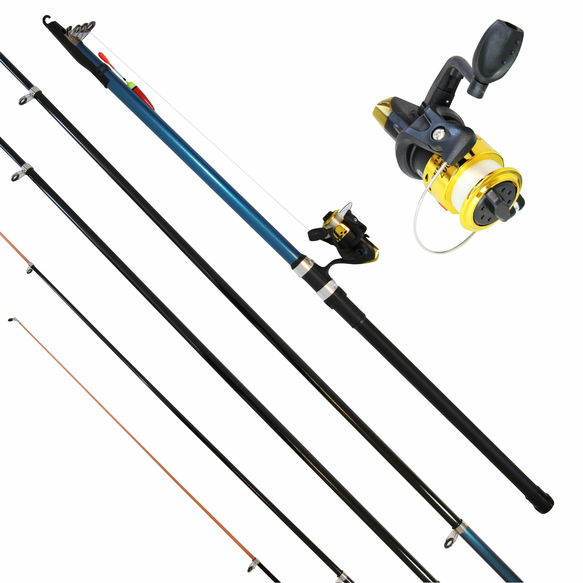 Удочка для рыбалки летняя телескопическая Оснащенная-сборная 2,1 м с оснасткой