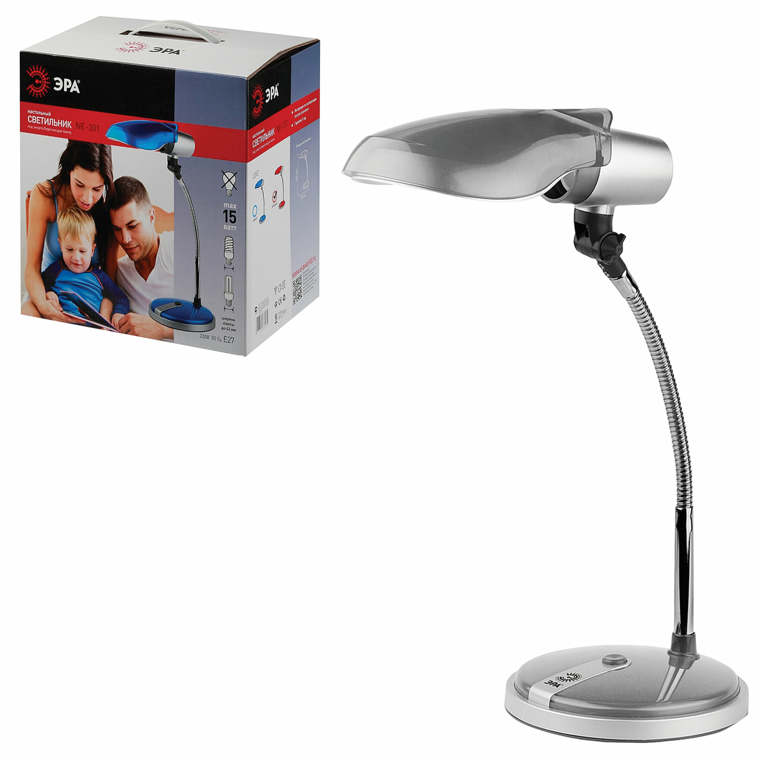 10 цен на Настольная лампа светильник ЭРА NE-301 на подставке, цоколь Е27, серебро, NE-301-E27-S