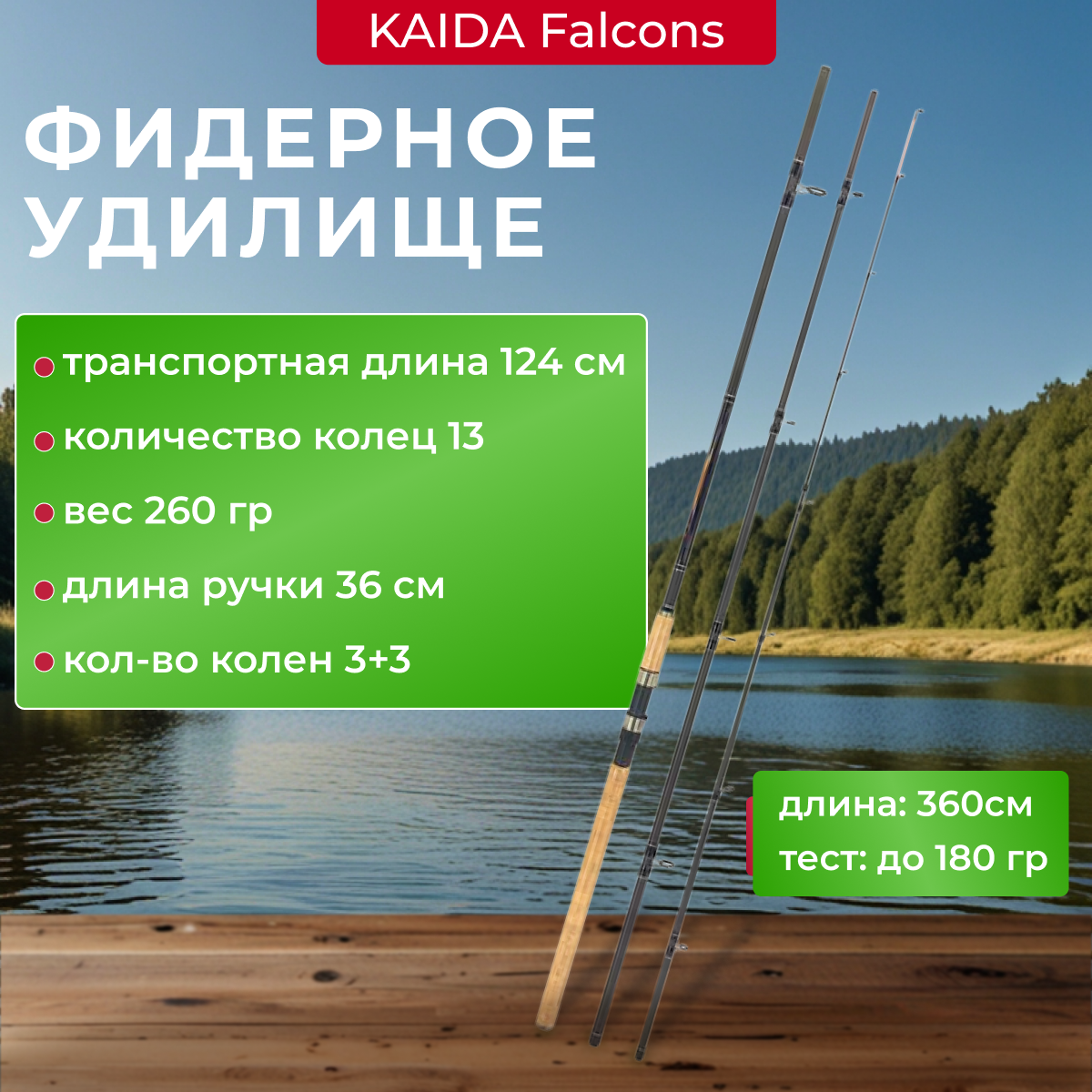 Фидерное удилище Kaida FALCONS длина 3.6м, 60-180гр. информация: