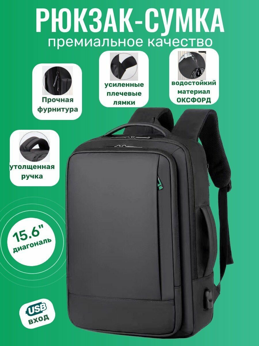 Рюкзак трансформер мужской городской черный для ноутбука USB информация:
