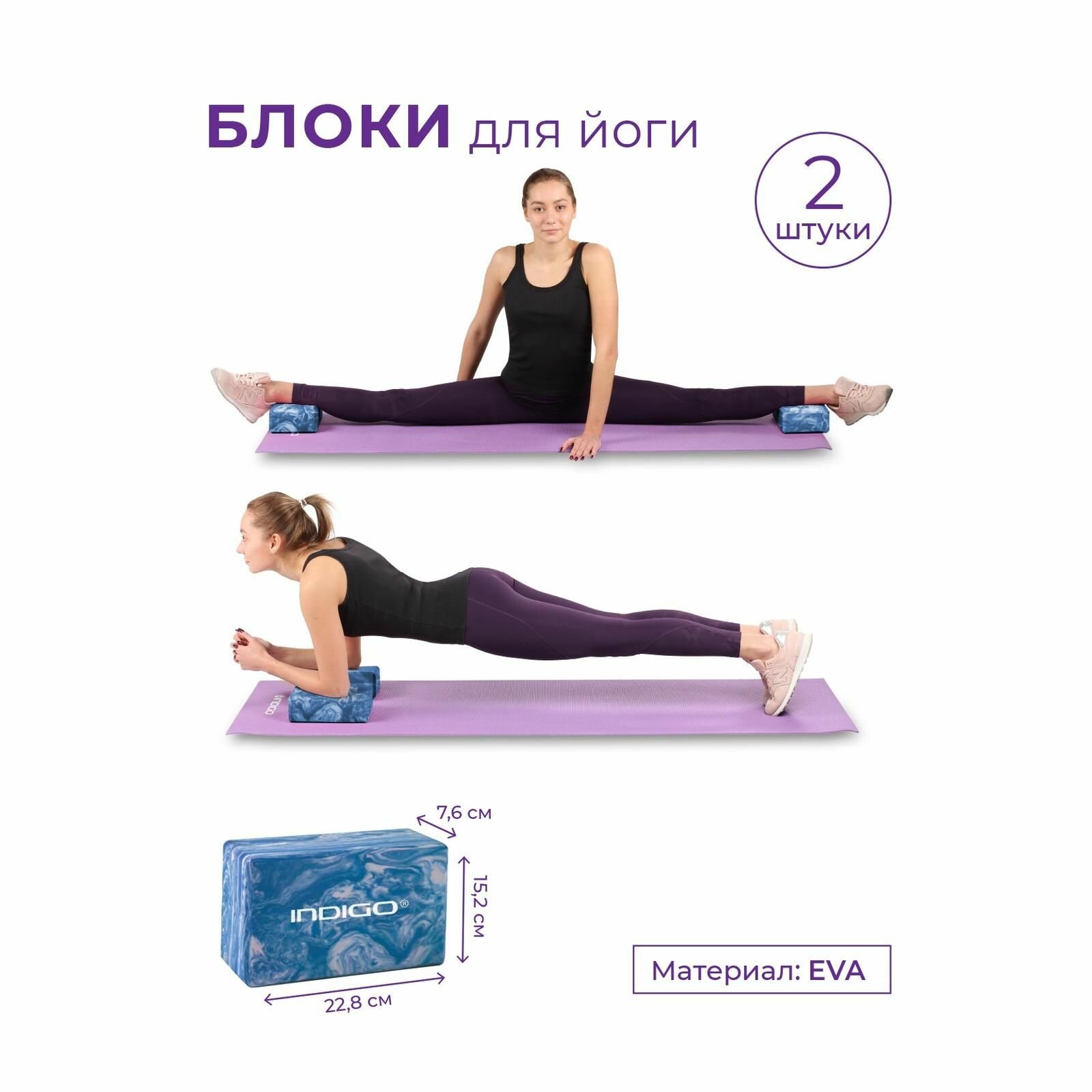 10 цен на Блоки для йоги (набор 2шт), Кирпичи для фитнеса, Спортивные кубики для йоги INDIGO 22.8x15.2x7.6 Мраморный голубой