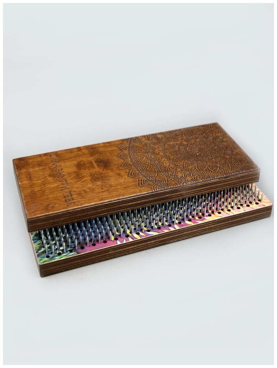 Доска садху / доска с гвоздями "Mandala" 9 мм орех / доска для йоги, стояния на гвоздях, медитации /массажный коврик / массажер для аккупунктуры информация: