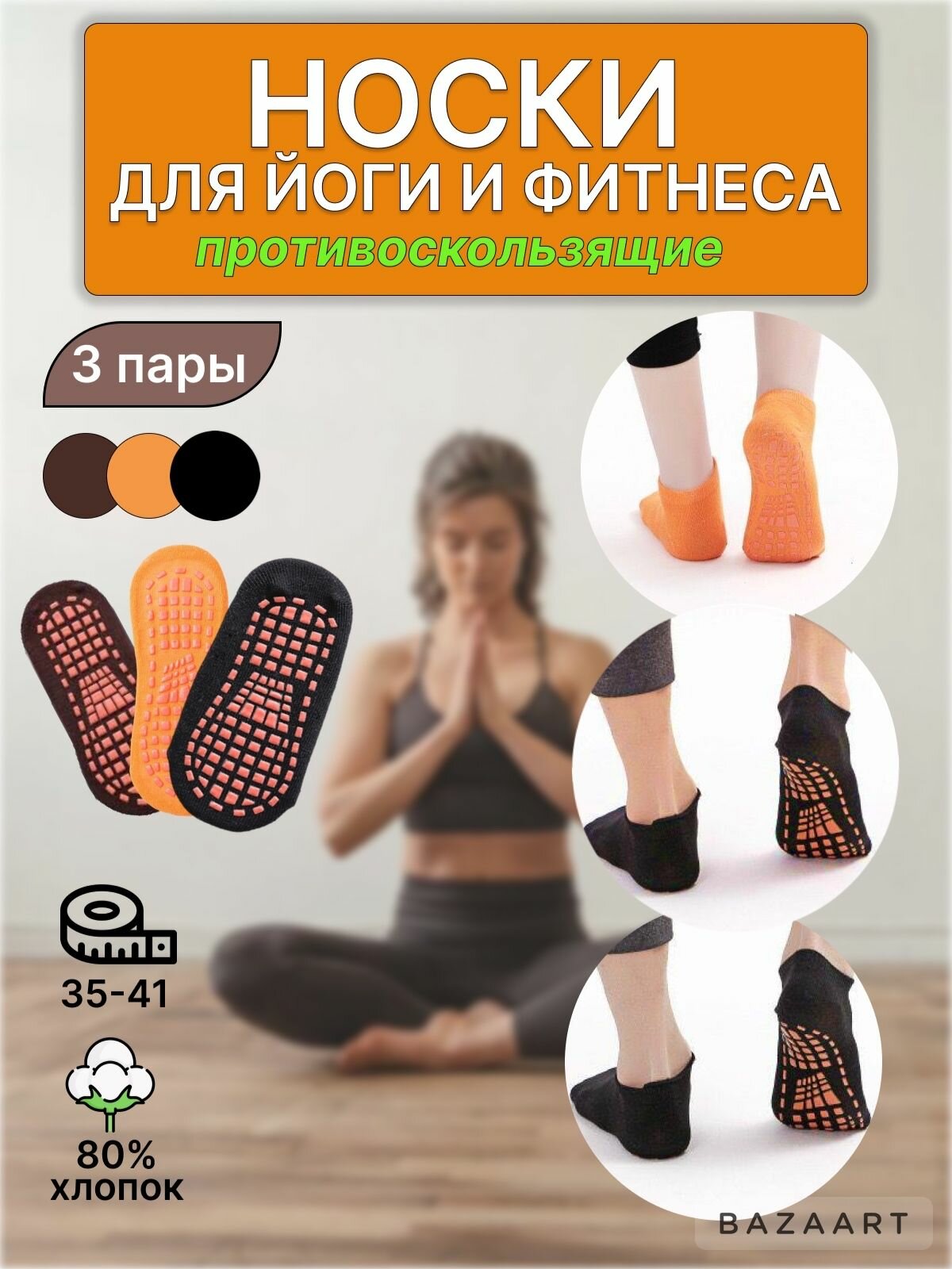 Носки следки для йоги и фитнеса, набор 3 пары информация: