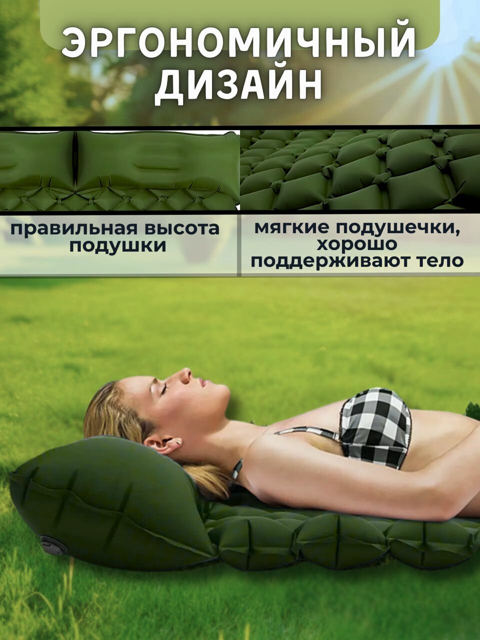 Отзывы на Кемпинговый надувной коврик для 2 человек / 2-хместный самонадувающийся матрас для отдыха на природе зеленый