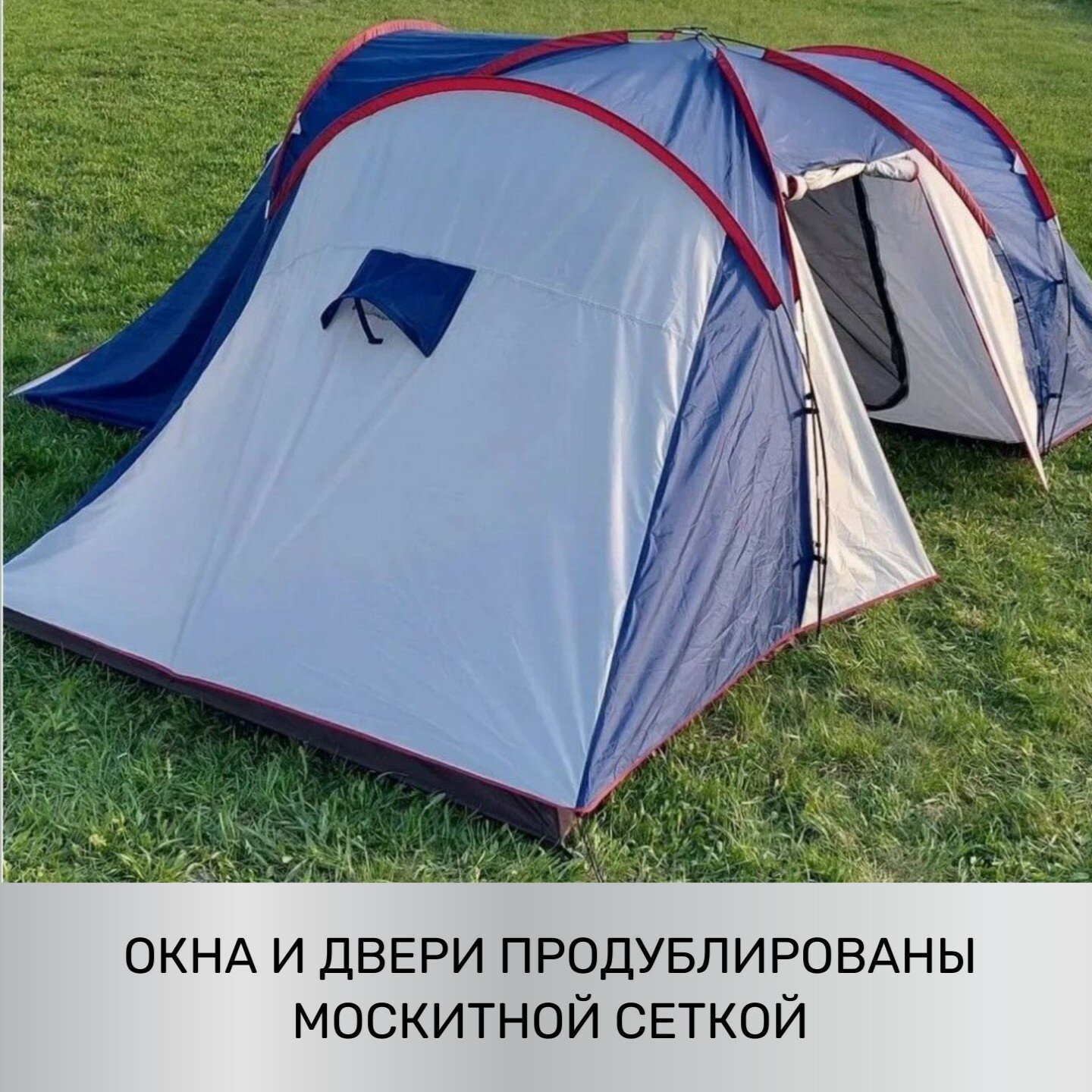 Палатка туристическая 4 местная двухслойная с навесом, палатка с тамбуром пляжная с москитной сеткой для кемпинга, туризма и рыбалки 9 100 ₽