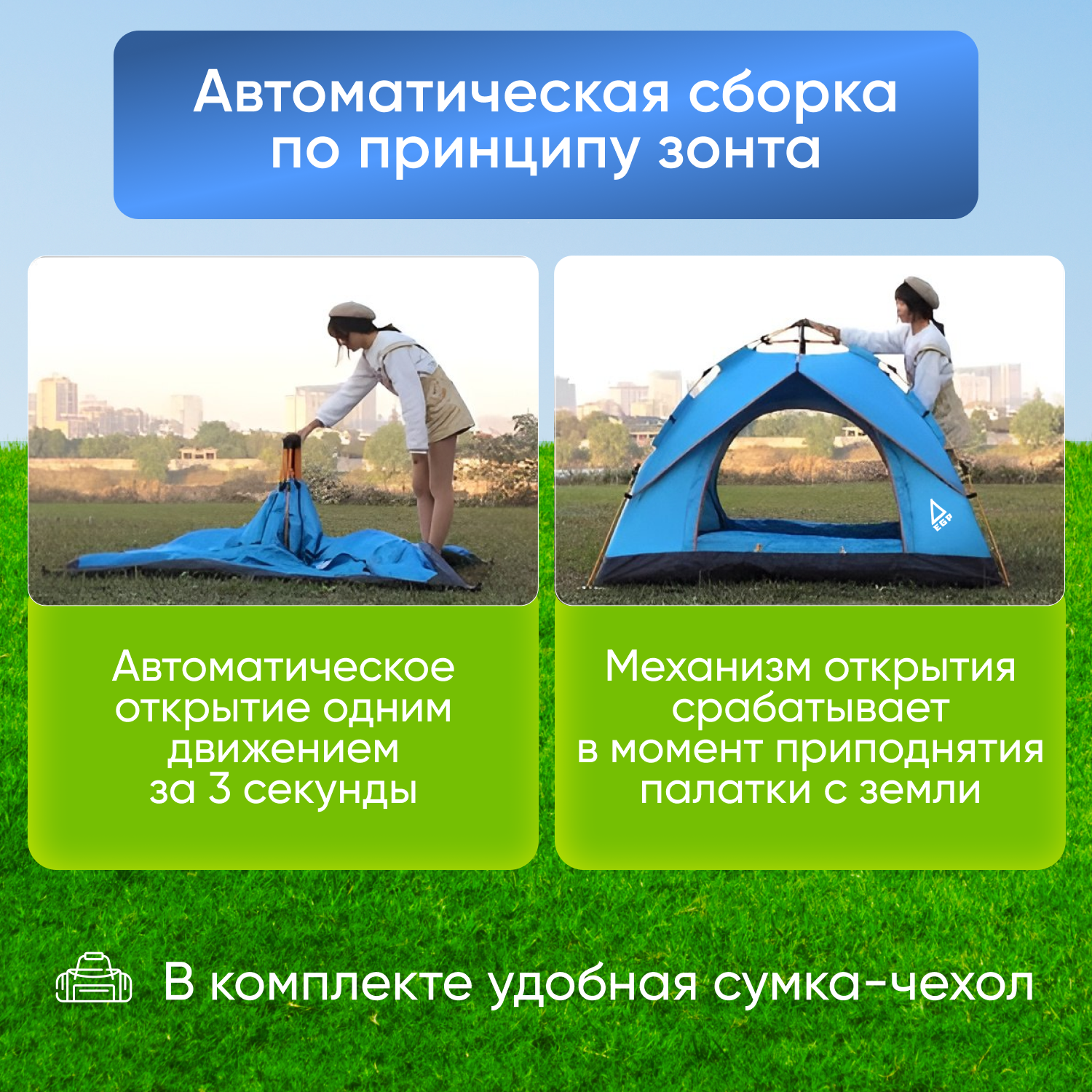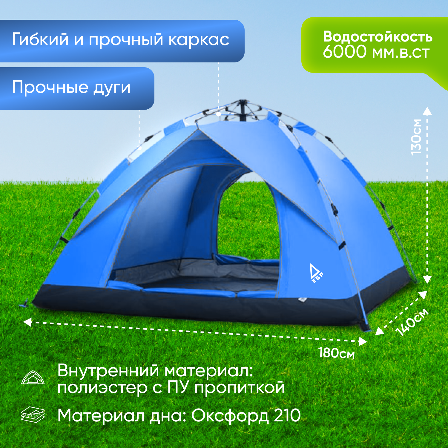 Отзывы на EGP tent Little Blue однослойная 2-х местная палатка / Палатка для кемпинга 180х140х130 см