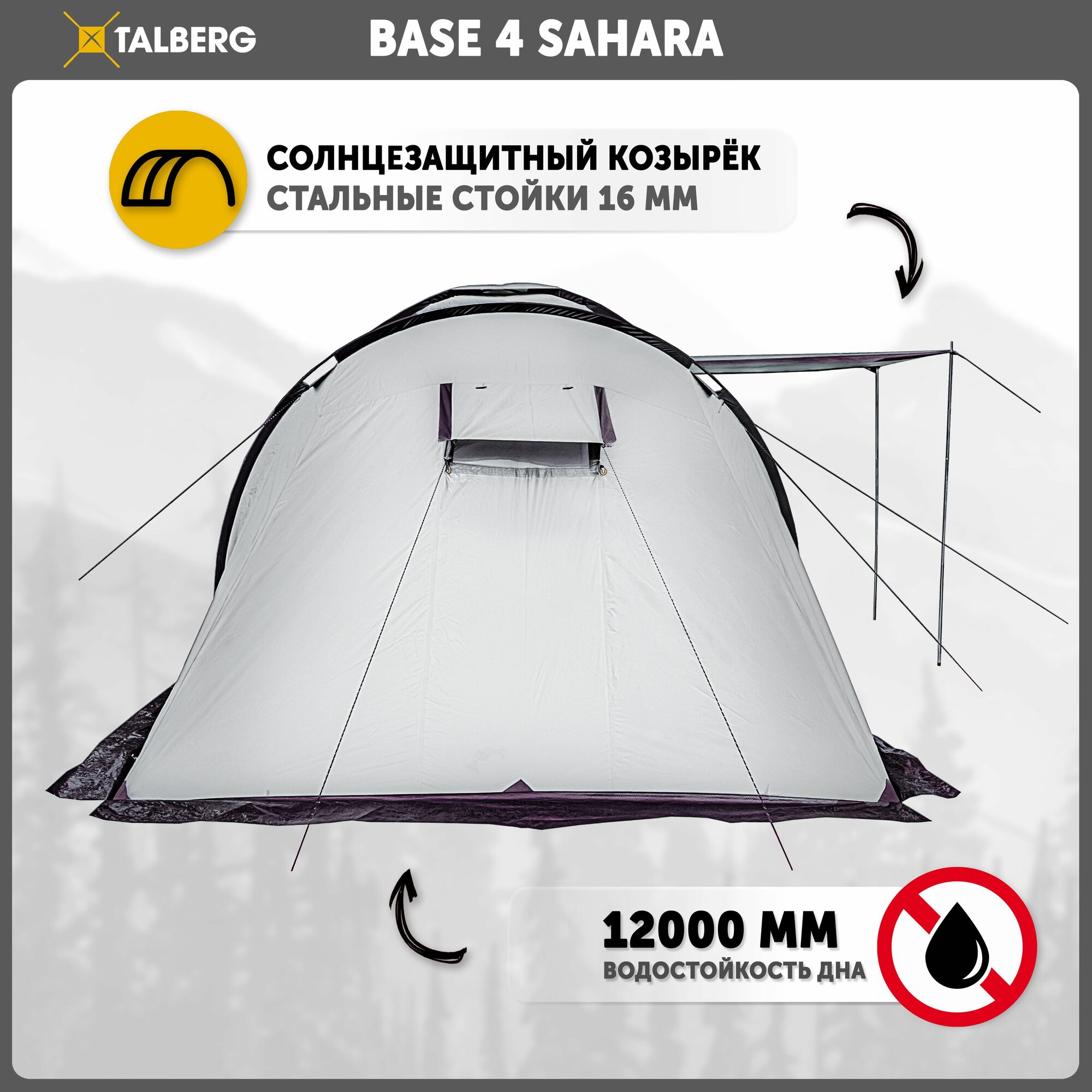 Палатка туристическая кемпинговая Talberg Base 4, цвет: серый информация: