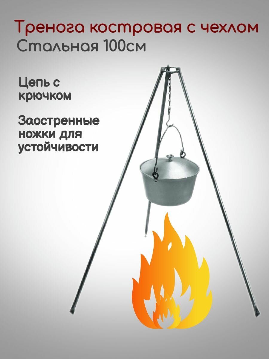 10 цен на Тренога для костра стальная в чехле с цепью и крючком 100см. Тренога костровая складная для котелка.