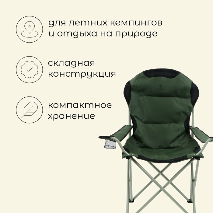 Кресло складное с подстаканником, 60 х 60 х 106 см, до 120 кг, цвет зелёный информация: