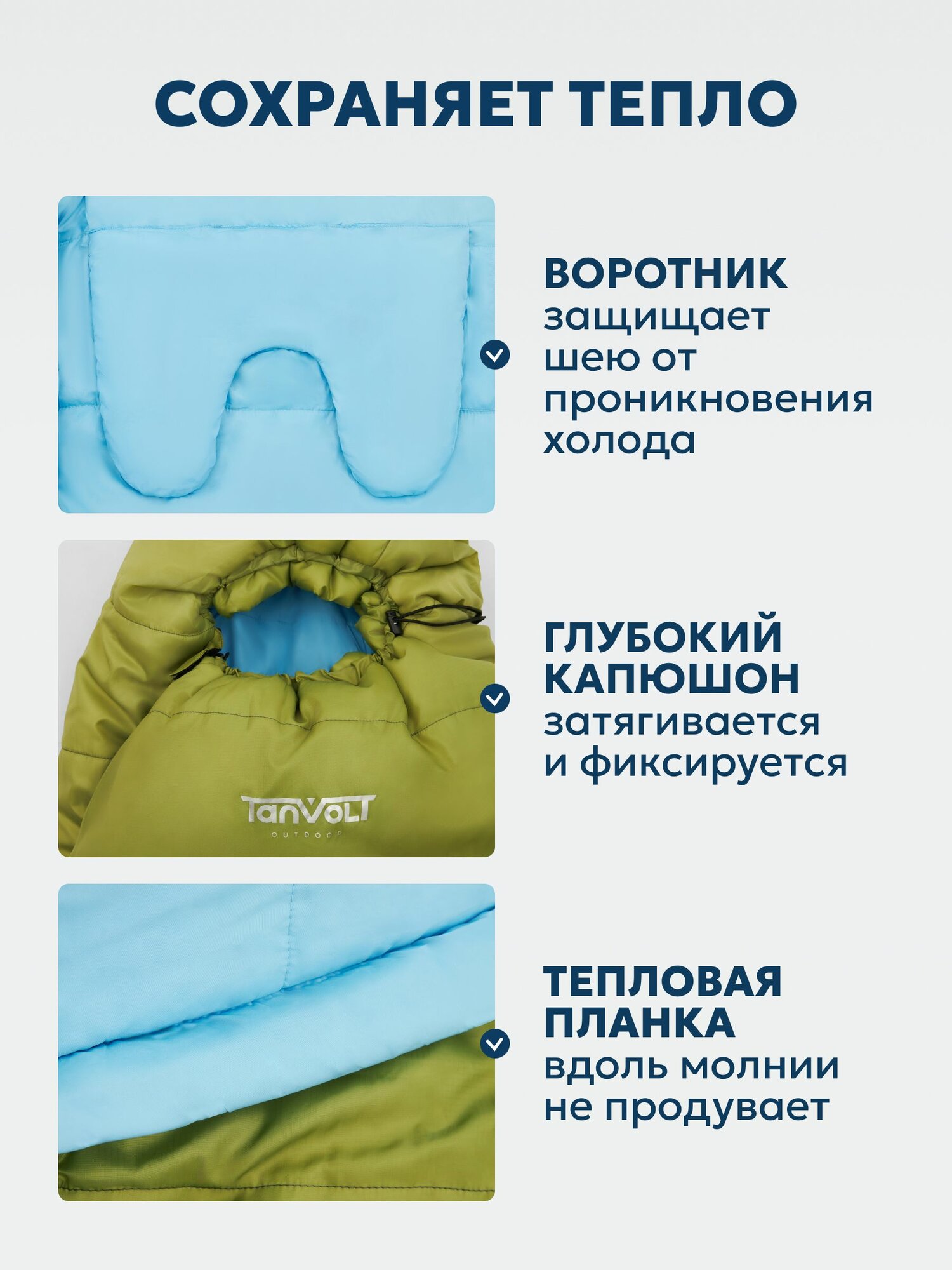 Отзывы на Спальный мешок "Кокон" туристический теплый с капюшоном Tanvolt, зеленый