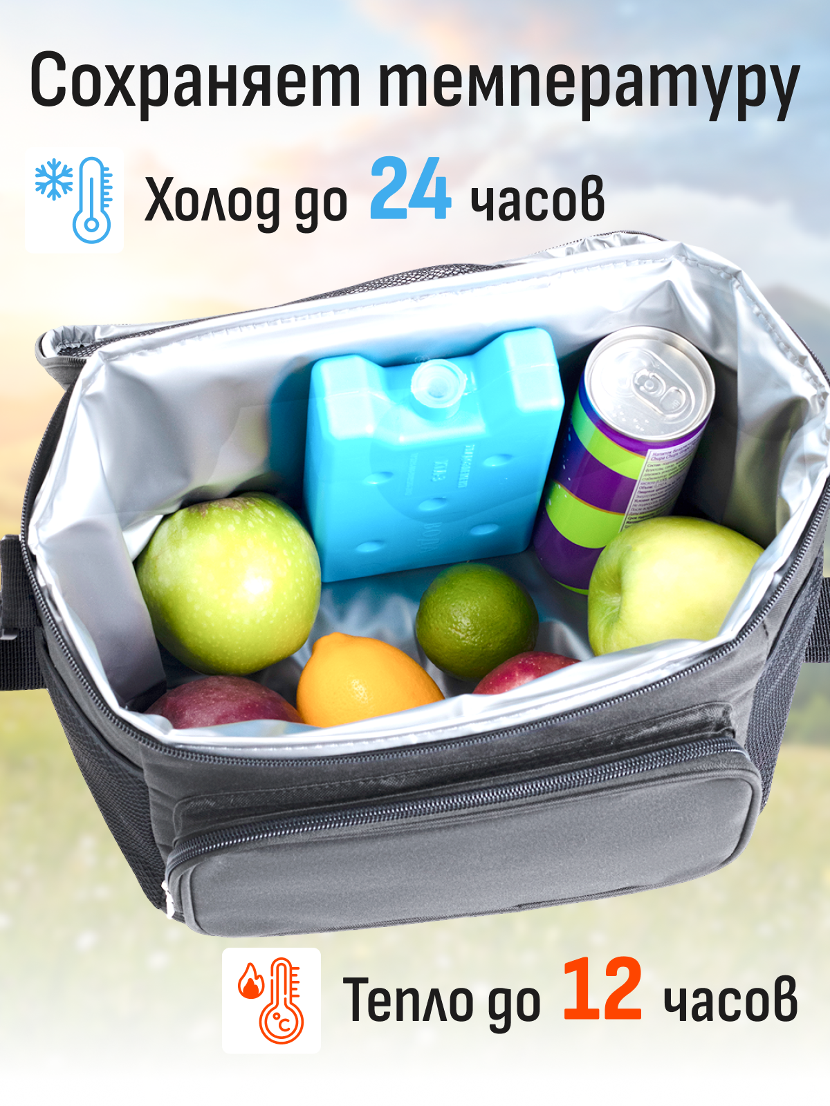 Отзывы на Термосумка холодильник для продуктов и напитков / для ланча (пикника), объем 10 литров, серый + аккумулятор холода