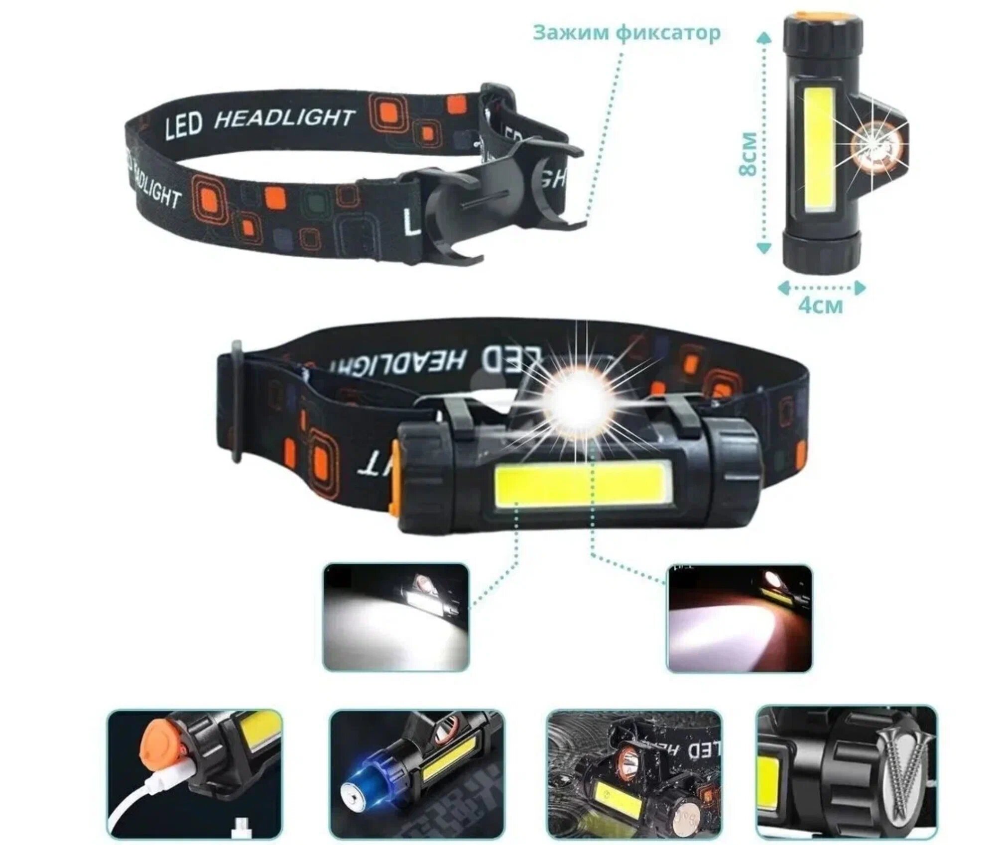 Фонарик налобный аккумуляторный светодиодный информация:
