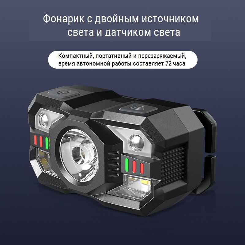 10 цен на Налобный фонарик индукционный с двойным датчиком освещенности