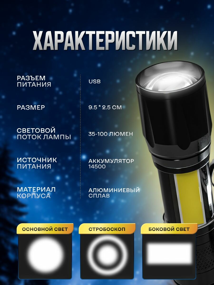 Мощный аккумуляторный фонарь для туризма и бытовых нужд информация: