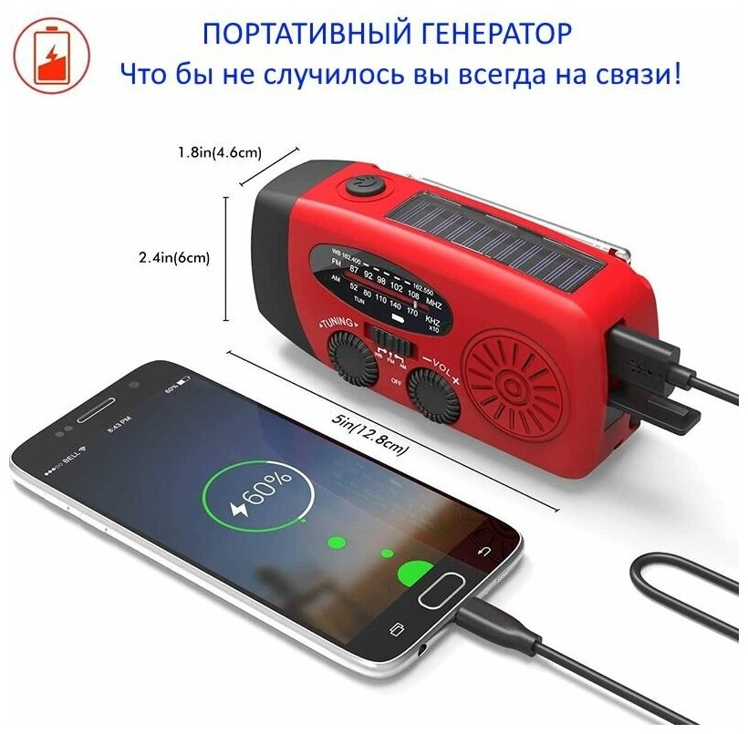 10 цен на Портативная генератор электрического тока. Фонарь, радио, зарядное для телефона.
