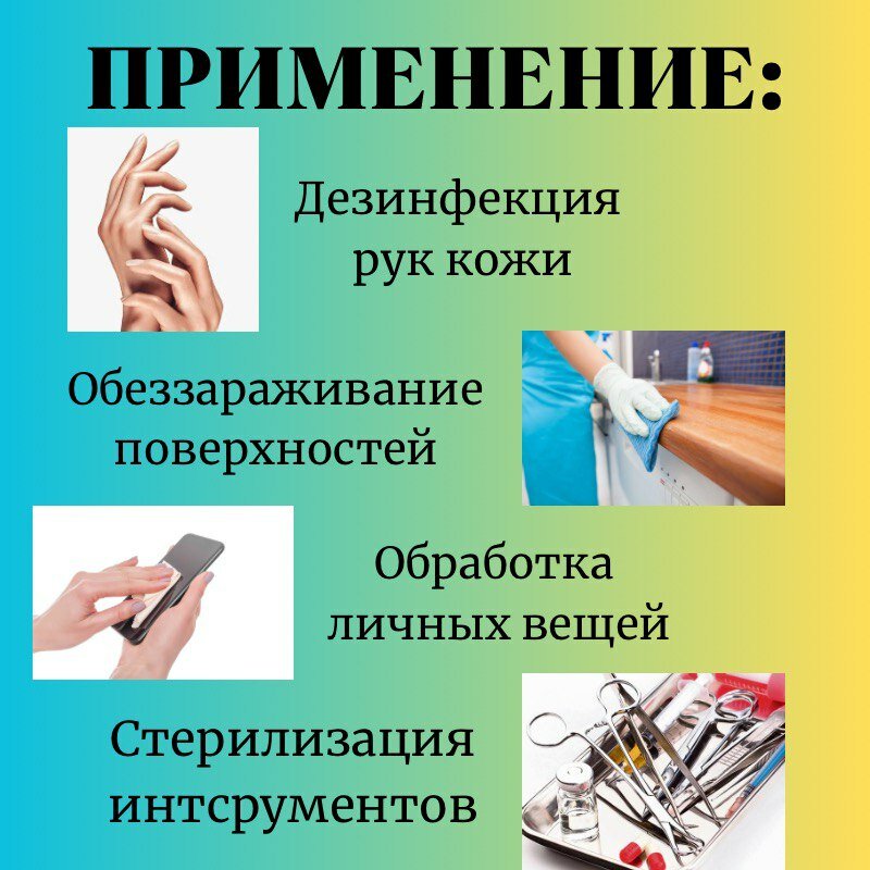 | Особые указания | Только наружное применение, обработка и дезинфекция рук и поверхностей |