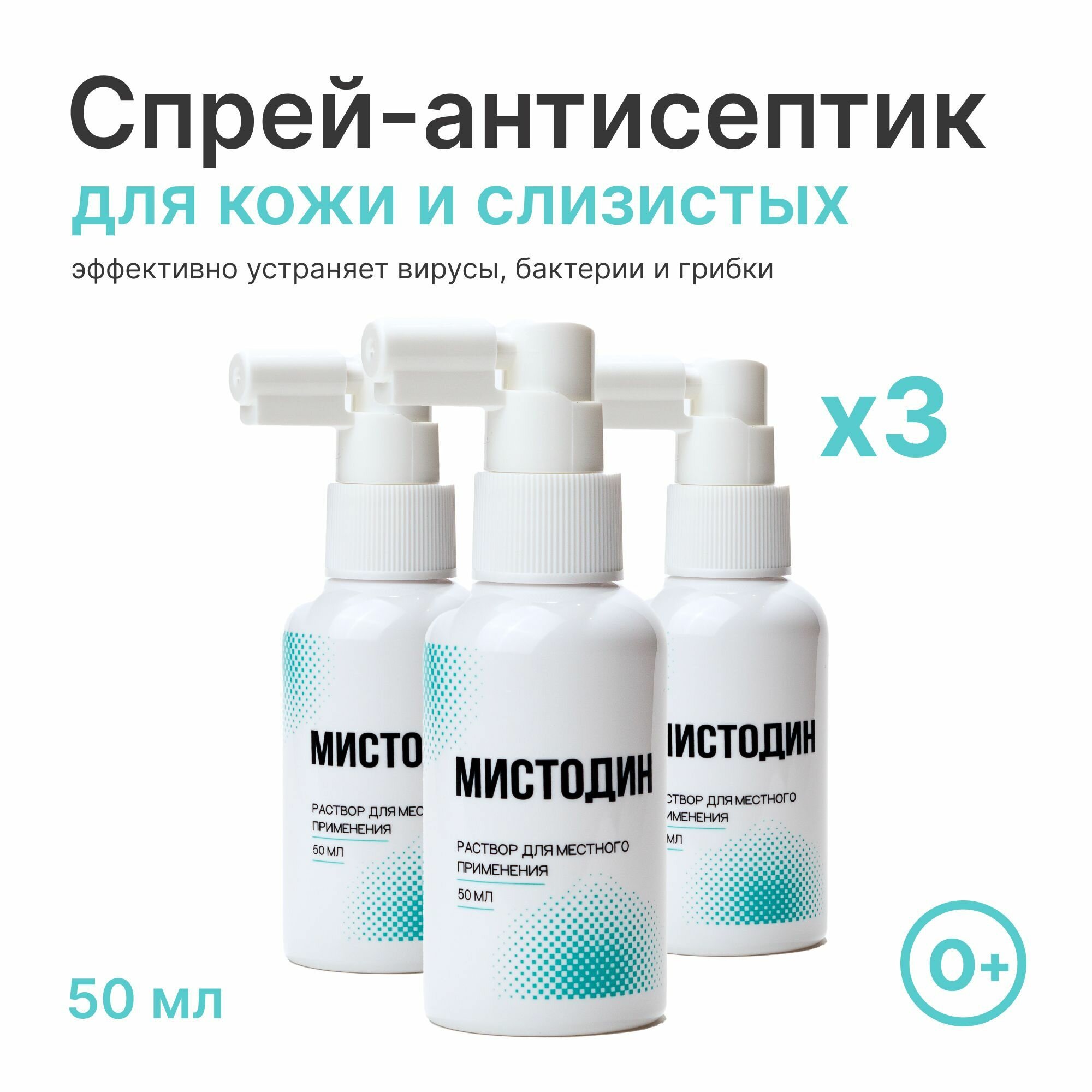 Антисептическое средство Мистодин. Карманный спрей для рук, слизистых, ротовой полости. Подходит взрослым и детям. Спрей, 3*50 мл информация: