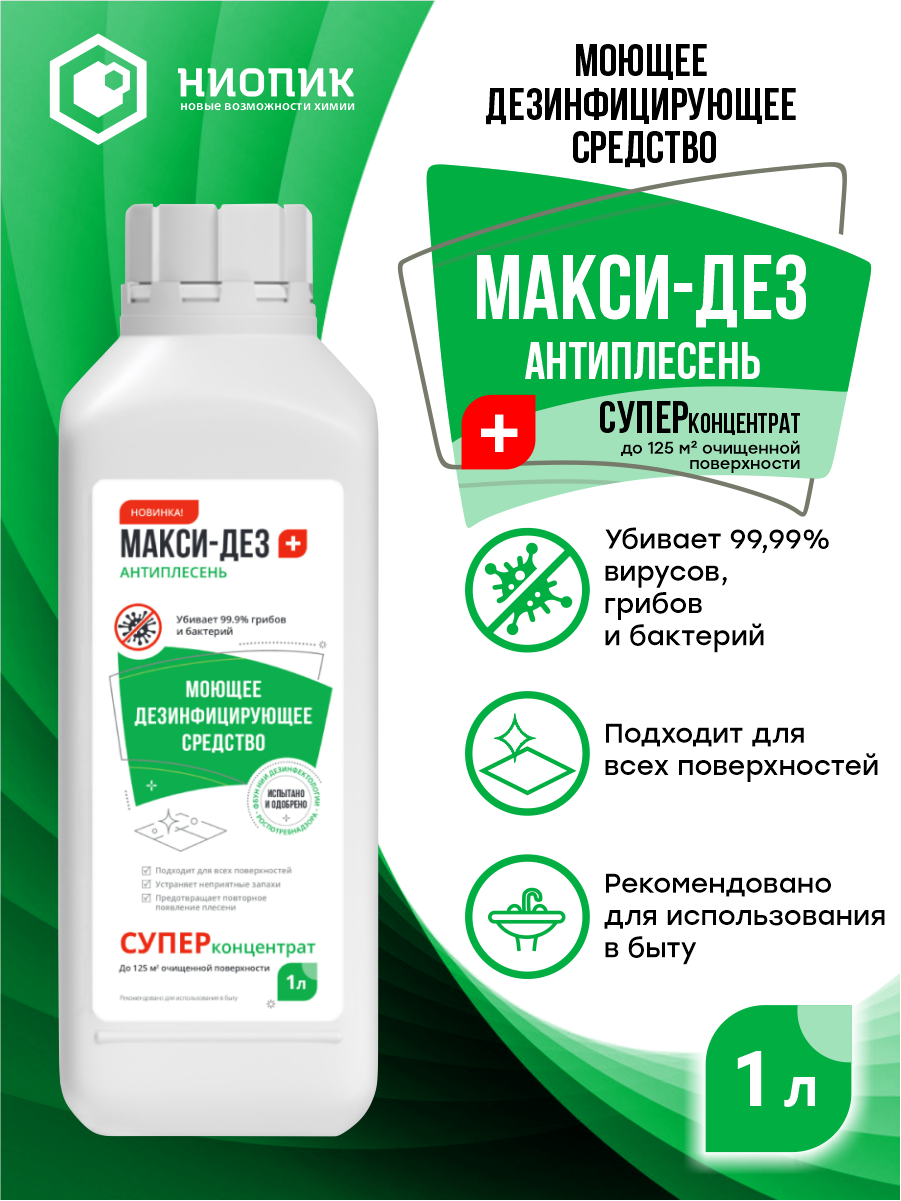 10 цен на Ниопик Дезинфицирующее и моющее средство Макси-Дез концентрат, 1000 мл, тип крышки: винтовая