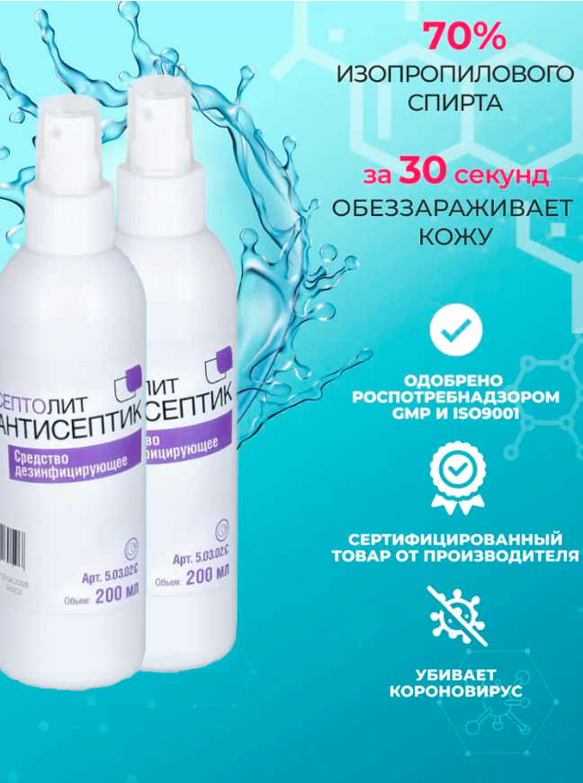 Средство дезинфицирующее универсальное "Септолит-Антисептик" 200 мл 2 шт информация: