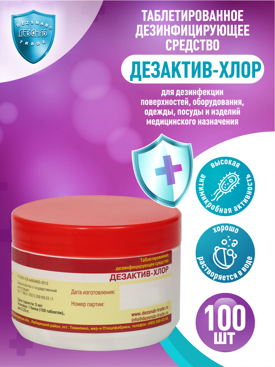 Дезинфицирующее средство Дезактив-хлор таблетки 100 штук информация: