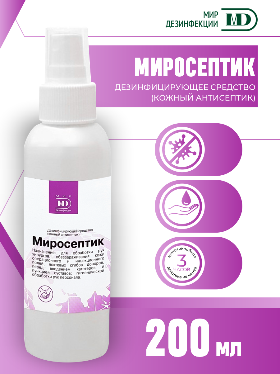 Миросептик кожный антисептик 200 мл спрей информация: