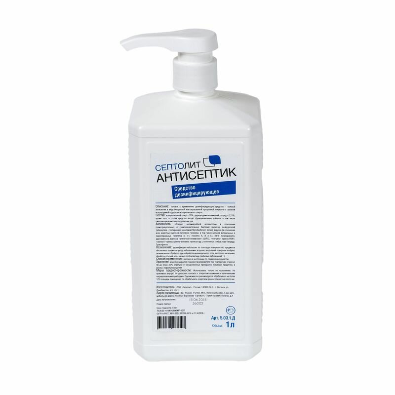 Септолит-Антисептик спиртовой для кожи и поверхностей 1 л (с дозатором) информация: