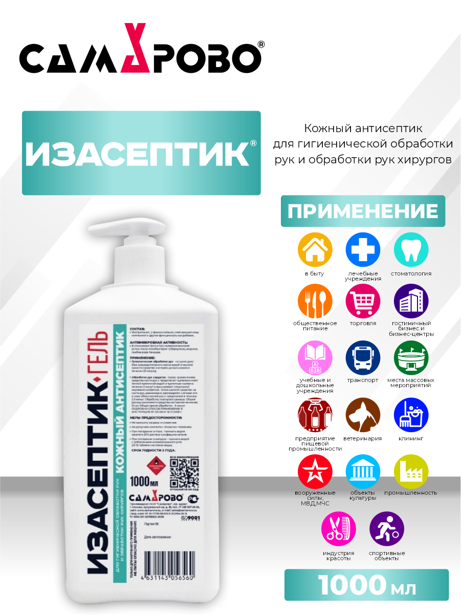 Антисептическое средство Изасептик Гель 1 литр с дозатором информация: