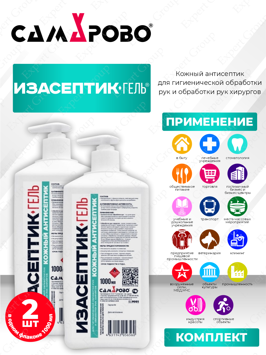 Антисептическое средство Изасептик Гель 1 литр с дозатором х 2 шт. информация: