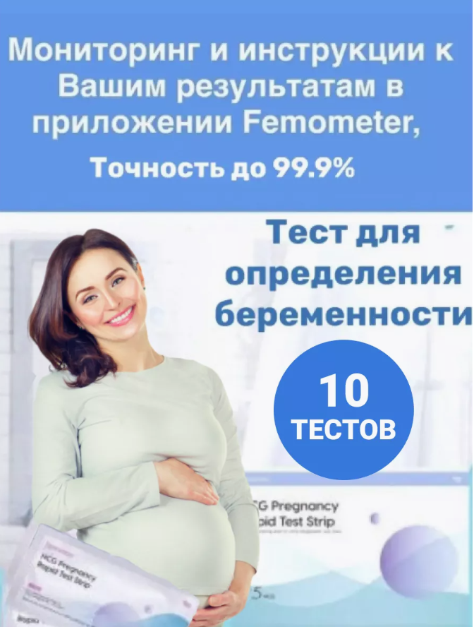 Отзывы на Тест медицинский Femometer: 10 тест-полоска на беременность (HCG Pregnancy Test) - Коробка